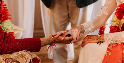 Akshatropanam & Panigrahanam (Hastmelap) - Expectations from Married Life The Bride and the Groom communicate their expectations of married life and show their consent by showering rice on each other. Bride requests his support for a healthy and prosperous family life. Groom requests her support in pursuing Dharma and for her cooperation in his various endeavors for a successful life. They accept each other's hands with blessings of Heavenly Gods with a promise to stay together for the rest of their lives, symbolically tying each other's wrists with sacred thread which is called Sutrabandhanam.